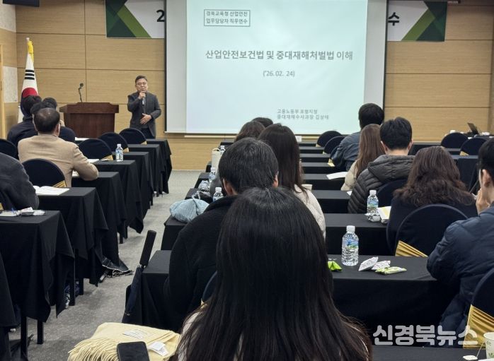 [신경북뉴스] 경북교육청은 24일부터 25일까지 1박 2일간 경주시에 있는 더케이호텔경주에서 도내 22개 교육지원청 업무 담당자 44명을 대상으로 ‘2026 산업안전보건・중대재해 예방 직무연수’를 개최했다고 밝혔다.