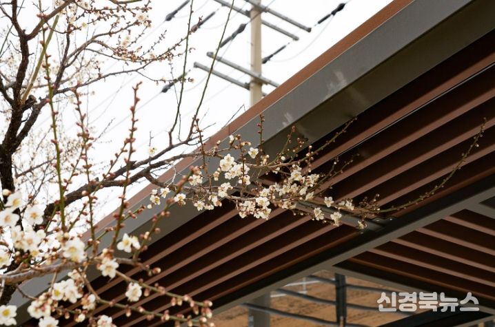 [신경북뉴스] 봄을 재촉하는 비가 내린 2월 24일 울진군 매화면 일대에 매화가 꽃망울을 터뜨리며 봄소식을 전하고 있다.