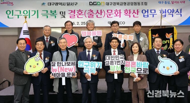 [신경북뉴스] 대구 달서구는 25일 EXCO에서 대구경북금형공업협동조합(이사장 박만희)과 인구위기 극복 및 결혼·출산문화 확산을 위한 업무협약을 체결했다.