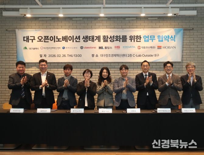 [신경북뉴스] 대구광역시와 대구창조경제혁신센터가 2월 26일 대구센터 2층에서 '대구 스타트업 오픈이노베이션 지원사업'의 공동 운영을 위한 업무협약을 체결했다.