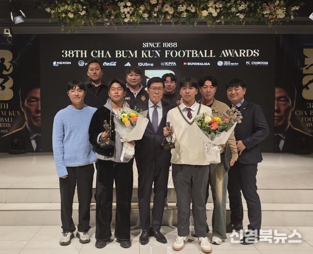 [신경북뉴스] 달성군청 유소년축구단 소속 골키퍼 최우성과 수비수 박성준이 서울 종로구 HW컨벤션센터에서 개최된 제38회 차범근 축구상 시상식에서 본상을 수상했다.