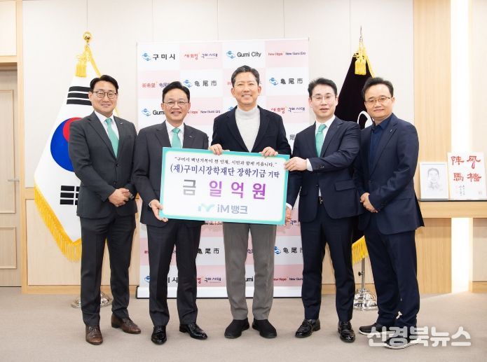[신경북뉴스] iM뱅크가 (재)구미시장학재단에 1억원의 장학기금을 전달했다. 이번 기탁은 구미지역 학생들의 교육환경 개선과 인재 육성을 지원하기 위한 것이다.