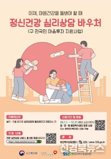 [신경북뉴스] 포항시는 정서적 어려움을 겪는 시민들을 대상으로 심리상담 바우처 지원 사업을 올해도 이어간다.