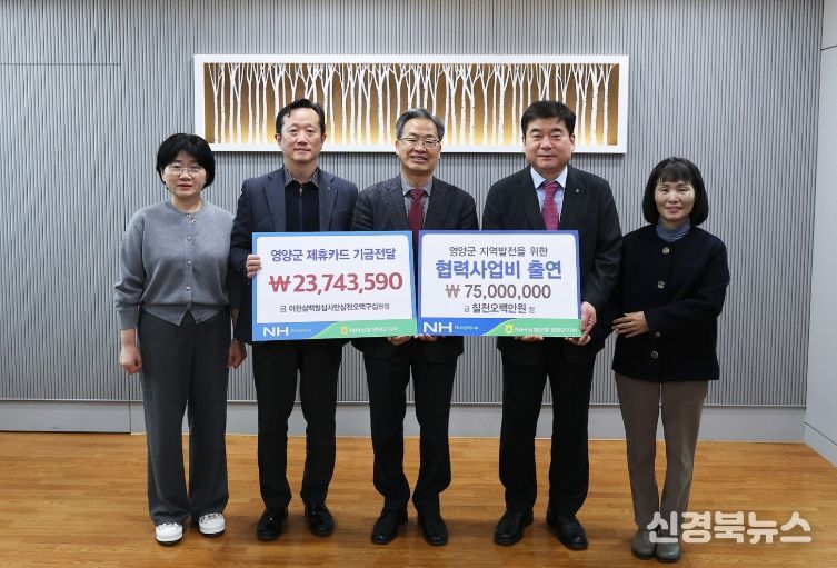 [신경북뉴스] 영양군은 6일 NH농협은행 영양군지부로부터 영양군 금고계약에 따른 협력사업비 7,500만 원 및 제휴카드 적립기금 2,374만 원을 전달받았다.