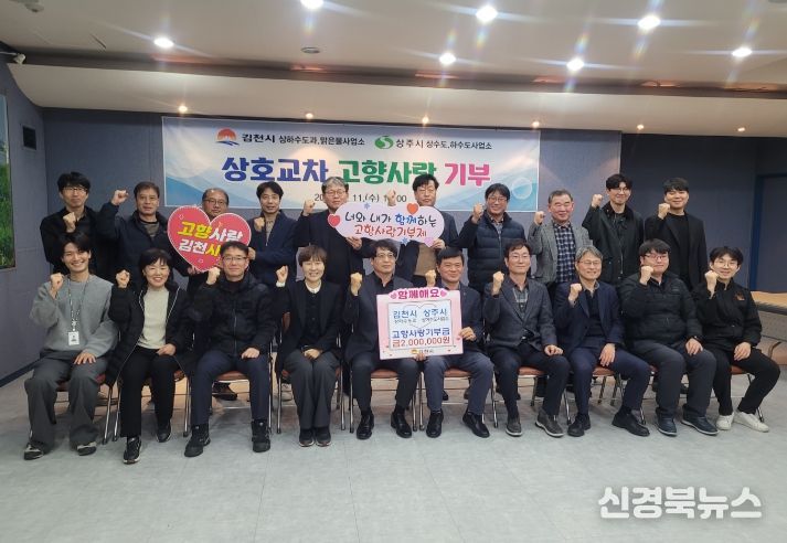 [신경북뉴스] 김천시 상하수도과와 맑은물사업소는 3월 11일 오후 2시, 상주시 상·하수도사업소와 함께 고향사랑 상호기부와 상하수도 시설 운영 협력 방문을 실시했다고 밝혔다.