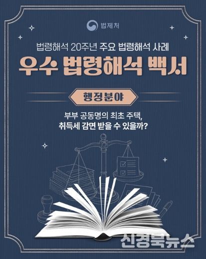 법제처는 부부가 동일한 주택을 공동명의로 취득하는 경우, 두 사람 모두의 지분 취득일이 계약의 잔금 지급일로 일치하므로 한 명이 먼저 주택을 소유했다고 볼 수 없다고 설명했다. 취득세 감면 요건을 충족한다고 안내했다.