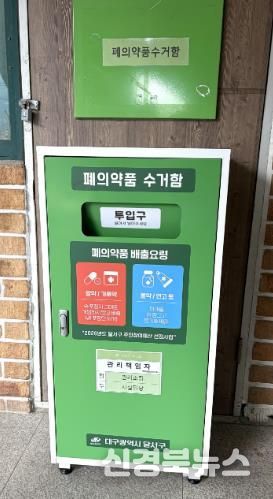 [신경북뉴스] 대구 달서구는 공동주택 100곳에 폐의약품 전용 수거함을 새로 마련해 주민들이 가정에서 발생한 폐의약품을 손쉽게 처리할 수 있도록 했다.