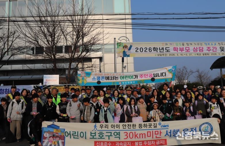 [신경북뉴스] 경상북도청도교육지원청이 3월 17일 청도초등학교 정문에서 학생들의 안전한 등굣길을 위한 교통안전 캠페인을 펼쳤다.