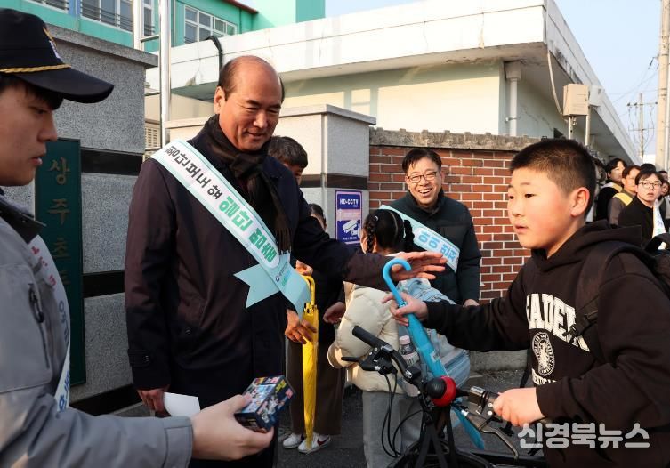[신경북뉴스] 상주시는 3월 17일 오전 8시 상주초등학교 후문에서 어린이 등굣길 교통안전 캠페인을 펼쳤다.