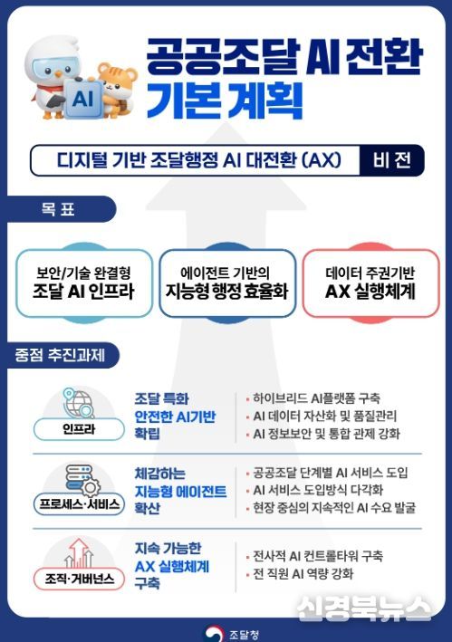 [신경북뉴스] 조달청이 공공조달 분야의 인공지능(AI) 도입을 체계적으로 추진하기 위한 '공공조달 AI 전환 기본계획'을 수립했다.