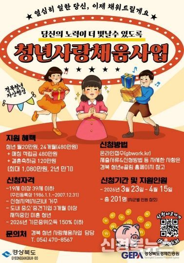[신경북뉴스] 경상북도는 중소‧중견기업에 근무하는 청년근로자의 복지향상과 지역정착을 유도하기 위해 ‘경북 청년 사랑채움사업’과 ‘경북 청년 행복카드 지원사업’ 참여자를 3월 23일부터 4월 15일까지 모집한다.