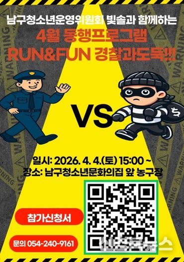 [신경북뉴스] 포항시청소년재단 남구청소년문화의집이 동행 4월 프로그램 ‘RUN&FUN 경찰과도둑’의 참가자를 모집한다.