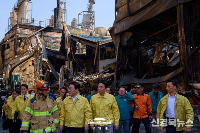 [신경북뉴스] 이재명 대통령이 21일 오후 대전 대덕구 안전공업에서 발생한 화재 현장을 방문해 피해 상황과 구조 작업을 직접 확인했다.