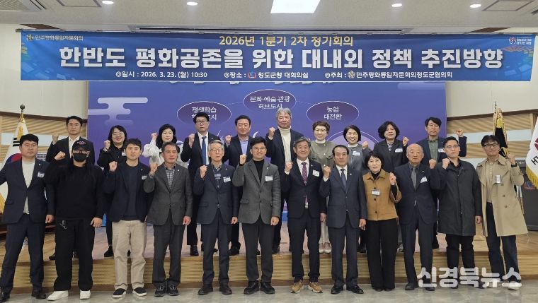 [신경북뉴스] 민주평화통일자문회의 청도군협의회가 지난 23일 청도군청 대회의실에서 1분기 정기회의를 열고 한반도 평화공존을 위한 정책 방향을 논의했다.