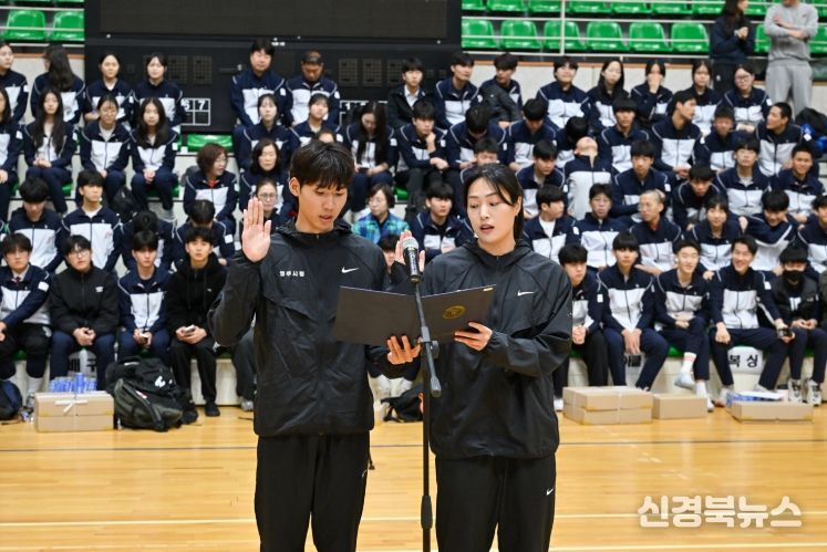 [신경북뉴스] 영주시가 제64회 경북도민체육대회 참가를 앞두고 선수단 결단식을 통해 결연한 의지를 다졌다. 25일 영주국민체육센터에서 열린 이 행사에는 엄태현 영주시장 권한대행, 김경준 영주시체육회장, 도·시의원, 교육장 등 주요 기관장과 선수, 임원 등 600여 명이 한자리에 모여 선수단을 격려했다.