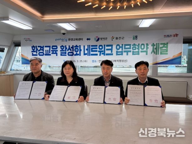 [신경북뉴스] 울릉군이 포항시, 영덕군, 울진군과 함께 동해안권 환경교육 협력 네트워크를 구축하는 업무협약을 체결했다.