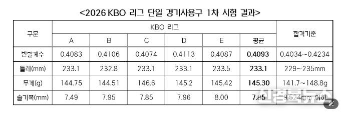 [신경북뉴스] KBO는 3월 30일(월) 2026 신한 SOL KBO 리그 단일 경기사용구의 1차 수시검사 결과를 발표했다.