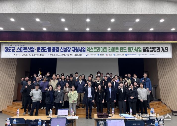 [신경북뉴스] 청도군이 지역 내 중소기업과 소상공인, 청년 창업가 등 100여 명이 참석한 가운데 '청도군 스마트산업·문화관광 융합 신성장 지원사업'과 '엑스트라마일 라이콘펀드'를 한자리에서 소개하는 통합 설명회를 개최했다.