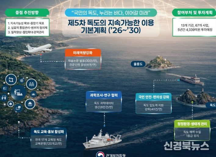 [신경북뉴스] 경상북도는 정부가 발표한 ‘제5차 독도의 지속가능한 이용을 위한 기본계획’과 2026년 시행계획에 발맞춰 독도의 실질적 관리주체로서 현장중심의 정책을 본격 추진한다.