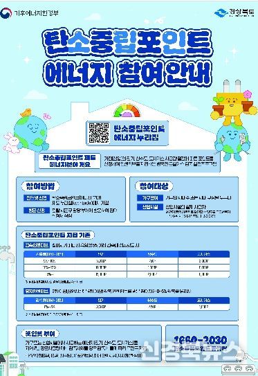 [신경북뉴스] 경상북도는 도민의 탄소중립 실천을 유도하고 온실가스 감축을 확대하기 위해 ‘탄소중립포인트제(에너지·자동차 분야)’ 참여자를 모집한다.