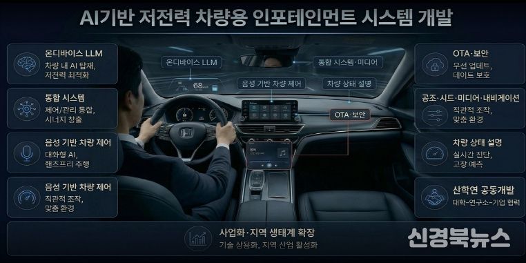 [신경북뉴스] 대구광역시는 산업통상부 주관 ‘2026 지역앵커기업-지역대학 전략기술 공동개발사업’ 공모에 ‘SDV 환경에 최적화된 AI 기반 저전력 통합 차량 인포테인먼트 시스템 개발’ 사업이 최종 선정됐다고 밝혔다.