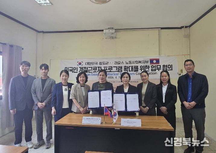 [신경북뉴스] 청도군은 외국인 계절근로자 도입 지역 확대와 안정적인 인력 수급 체계를 구축하기 위해 라오스 노동사회복지부를 방문하여 변경 업무협약(MOU)을 체결하고, 라오스 현지에서 계절근로자 선발 과정에 직접 참여하여 최종 면접을 실시했다고 7일 밝혔다.