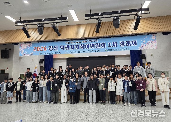 [신경북뉴스] 경산교육지원청은 4월 8일, 학생교육지원관 2강당에서 관내 초·중·고등학교 학생회장을 대상으로 ‘2026학년도 경산 학생자치참여위원회 1차 정례회’와 리더십 함양 특강을 개최했다.