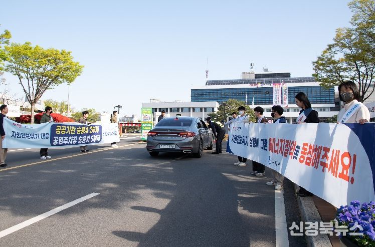 [신경북뉴스] 구미시는 13일 오전 8시 30분 시청 입구에서 출근길 직원과 시민들을 대상으로 에너지 절약 실천을 위한 ‘공공기관 승용차 2부제 및 공영주차장 5부제’ 동참 캠페인을 펼쳤다.