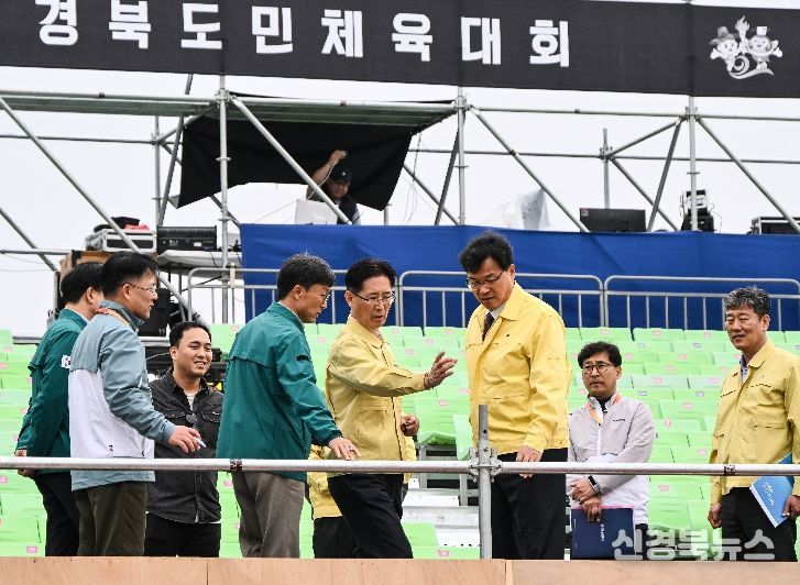 경북도청 새마을광장에서 열린 제64회 경북도민체육대회 개회식에는 황명석 경상북도지사 권행대행이 직접 현장을 점검하며 스탠드 구조물 등을 꼼꼼히 확인했다.