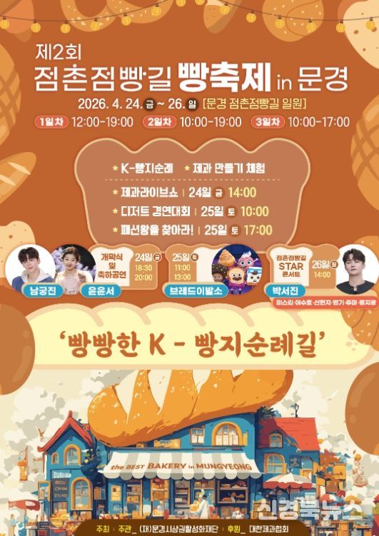 올해로 두 번째를 맞는 ‘점촌점빵길 빵 축제’는 오는 24일부터 26일까지 3일간 문경 옛 시가지인 점촌점빵길 일대에서 열린다.