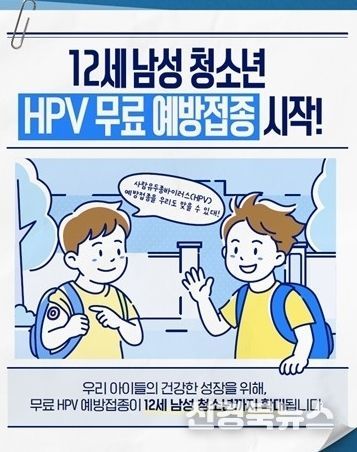 [신경북뉴스] 포항시 남·북구보건소는 오는 5월 6일부터 12세 남성 청소년(2014년생)을 대상으로 사람유두종바이러스(Human Papillomavirus, 이하 HPV) 백신 국가예방접종 지원사업을 새롭게 시행한다.