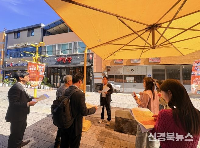 [신경북뉴스] 문경시는 점촌원도심상권 점촌역 방향 200여 미터 구간에 ‘닻별 거리’ 조성 속도를 높이고 있다. 노란색 간판과 어닝을 새로 설치하고, 상징 조형물과 조형 벤치 등을 배치하며, 은하수 파고라 70미터 조명으로 거리를 화려하게 꾸민다.