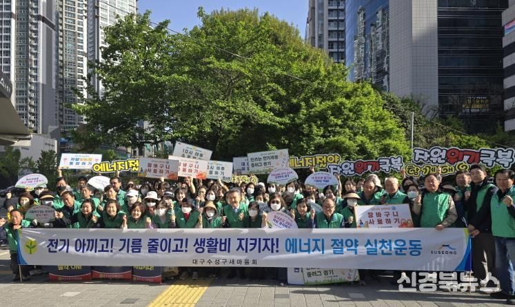 [신경북뉴스] 대구 수성구 새마을회는 21일 범어네거리 일원에서 비상경제 상황에 대응하고 에너지절약 실천 문화를 확산하기 위한 ‘에너지절약 실천 캠페인’을 전개했다.