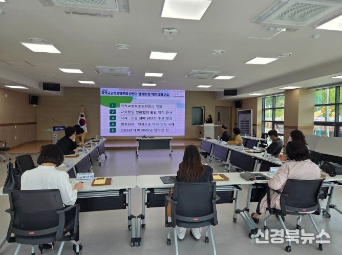 경상북도교육청 행정과 우이현 변호사를 강사로 위촉하여 진행된 이번 연수는 신규 위원의 역할 안내와 사안 처리의 전문성 강화를 바탕으로 한 교권보호위원회의 실질적 대응력을 높이기 위한 취지로 마련됐다.