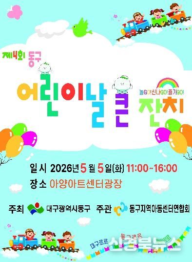 [신경북뉴스] 대구 동구청은 5월 5일 어린이날에 아양아트센터 광장에서 ‘제4회 동구 어린이날 큰잔치’를 개최한다.