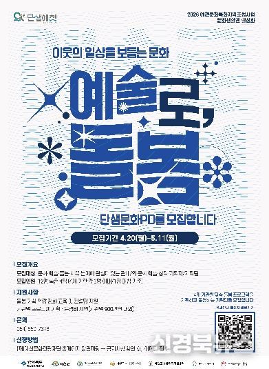 [신경북뉴스] (재)예천문화관광재단이 문화특화지역조성사업의 일환으로 진행되는 '예술로, 돌봄' 사업에 참여할 주민 문화기획자‘단샘문화PD’를 모집한다.