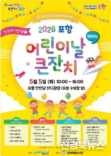 [신경북뉴스] 포항시는 제104회 어린이날을 맞아 내달 5일 남구 만인당 잔디광장에서 ‘2026 포항 어린이날 큰 잔치’를 개최한다.
