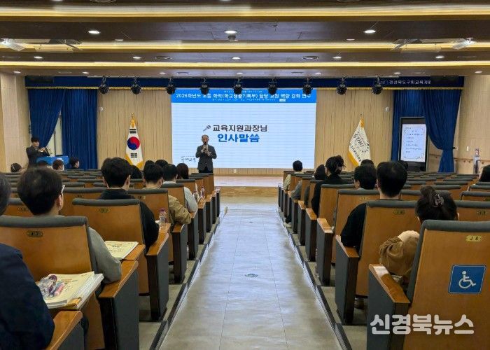 [신경북뉴스] 경상북도구미교육지원청은 2026년 4월 22일 구미교육지원청 1층 다목적강당에서 관내 초등학교 학교생활기록부 및 학적 담당 교원 52명을 대상으로 『2026 초등학교 학적(학교생활기록부) 담당 교원 역량 강화 연수』를 실시했다.