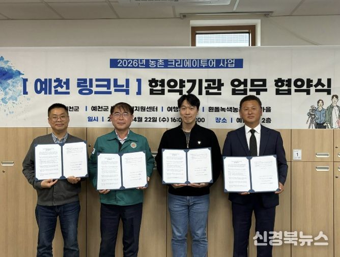 [신경북뉴스] 예천군은 지난 22일 오후 4시, ‘농촌 크리에이투어’ 사업의 체계적인 추진과 민·관 협력 강화를 위한 민간 협의체를 구성하고 업무 협약을 체결했다고 밝혔다.