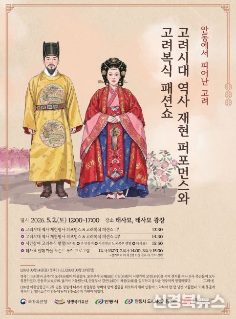 [신경북뉴스] 안동시 도시재생지원센터는 오는 5월 2일 12시부터 태사묘와 태사광장 일대에서 ‘2026년 생생 국가유산 사업’의 일환으로 진행되는 '안동에서 피어난 고려' 행사를 개최한다고 밝혔다.