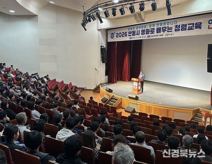 [신경북뉴스] 안동시는 4월 21일 안동시민회관 낙동홀에서 시 소속 공무원 및 공직유관단체 직원 380여 명이 참석한 가운데 ‘2026년 영화로 배우는 청렴교육’을 실시했다.