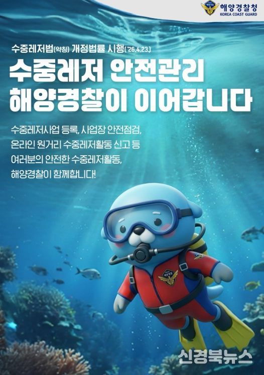 [신경북뉴스] 울진해양경찰서는 4월 23일부터 수중레저 안전관리 업무가 해양수산부에서 해양경찰청으로 완전히 일원화되어 시행된다고 밝혔다.