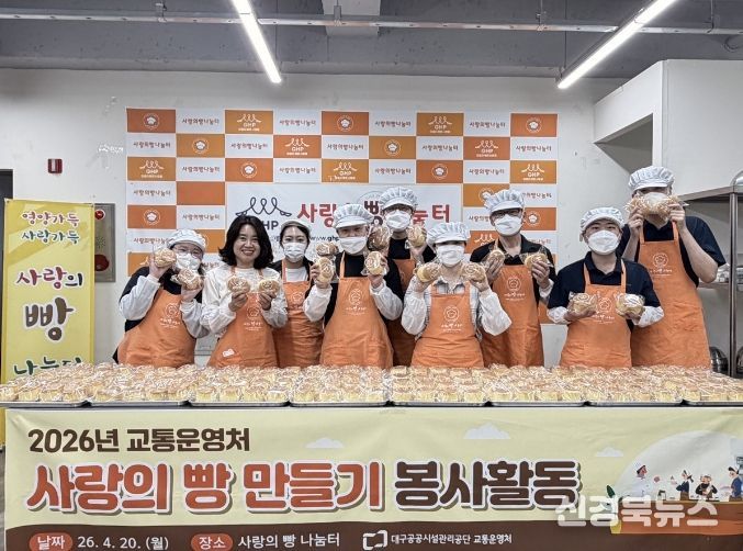 [신경북뉴스] 대구공공시설관리공단 교통운영처는 지난 4월 20일 지역 내 소외된 독거노인을 위한 ‘사랑의 빵 만들기’를 실시하여 샬롬재가노인돌봄센터에 기부하며 이웃사랑을 실천했다.