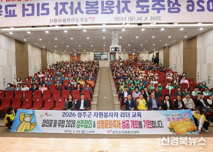 [신경북뉴스] 경북 성주군자원봉사센터는 지역 공동체의 따뜻한 변화를 이끄는 자원봉사 리더들을 한자리에 모아 의미 있는 교육의 장을 마련했다. 4월 24일 성주군청 대강당에서 열린 '2026 성주군 자원봉사자 리더 교육'은 단순한 역량 강화 교육을 넘어 나눔과 연대의 가치를 되새기고, 다가오는 지역 대표 축제를 함께 준비하는 결속의 자리로 깊은 울림을 전했다.