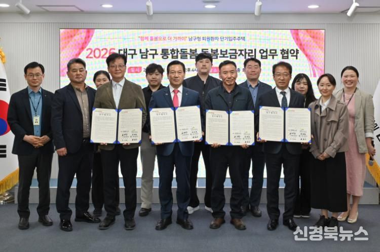 [신경북뉴스] 대구 남구는 지난 24일 지역사회 통합돌봄 활성화를 위한 『돌봄보금자리』 운영을 위해 LH대구북부권주거복지지사와 남구종합사회복지관 및 대명사회복지관과 업무협약을 체결했다고 밝혔다.