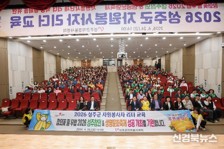 [신경북뉴스] 경북 성주군자원봉사센터(센터장 이명진)는 지역 공동체의 따뜻한 변화를 이끄는 자원봉사 리더들을 한자리에 모아 의미 있는 교육의 장을 마련했다. 4월 24일 성주군청 대강당에서 열린 '2026 성주군 자원봉사자 리더 교육'은 단순한 역량 강화 교육을 넘어 나눔과 연대의 가치를 되새기고, 다가오는 지역 대표 축제를 함께 준비하는 결속의 자리로 깊은 울림을 전했다.