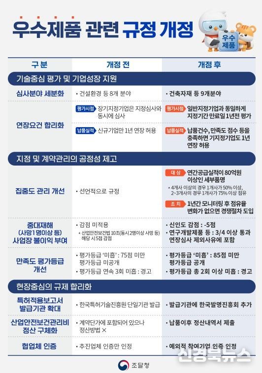 [신경북뉴스] 조달청은 기업의 성장을 지원하고, 공정한 경쟁환경을 조성하기 위해 우수조달물품 관련 규정을 개정하여 4월 27일부터 시행한다고 밝혔다.