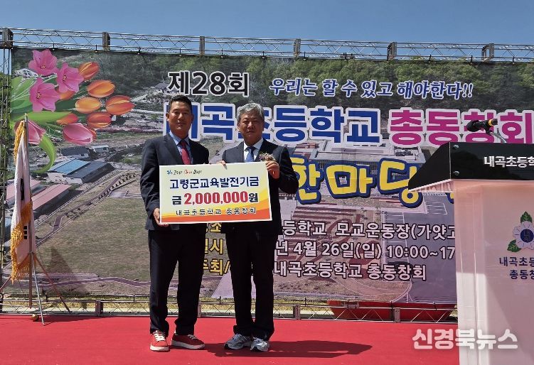 [신경북뉴스] 내곡초등학교 총동창회(회장 문수열)에서 4월 26일(일) 가얏고 정원에서 개최된 ‘제28회 내곡초등학교총동문회 화합한마당축제’에서 지역의 교육 발전과 인재 양성을 위해 사용해 달라며 지난해에 이어 교육발전기금 200만원을 기탁했다.