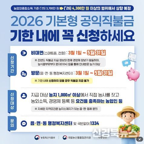 [신경북뉴스] 2026 기본형 공익직불금 기한 내에 꼭 신청하세요.