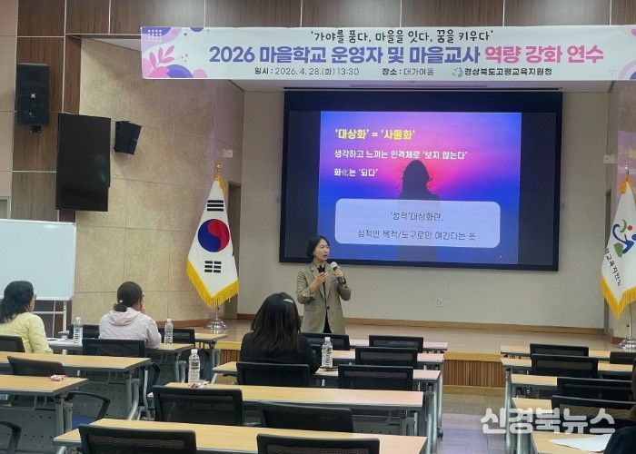 [신경북뉴스] 경상북도고령교육지원청은 4월 28일 오후 1시 30분, 고령교육지원청 대가야홀(3F)에서 관내 마을학교 운영자 및 마을교사를 대상으로 ‘2026 고령미래교육지구 마을학교 운영자 및 마을교사 역량강화 연수’를 개최했다.